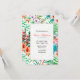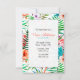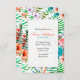 A brilliantly-coloured, hand-painted, tropical invitation with a lush floral and fern background featuring pink flamingos. Suitable for almost any happy occasion.