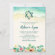 This elegant beach themed Bat Mitzvah invitation is perfect for your special day! The design features tropical watercolor flowers, Star of David and ocean waves on the sand.