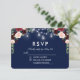 Watercolor Floral Burgundy Blue String Lights and Mason Jars Wedding RSVP Card - Blue Back