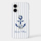 watercolor floral blue nautical stripes girly iPhone 17 Case