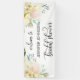 Simply elegant floral rustic bouquet design in watercolor (watercolour) green greenery, blush pink, beige, champagne, vanilla, peach, white flower roses / peony on white background and black letters. Wedding bridal shower WELCOME BANNER SIGN for that spring or summer theme.
