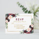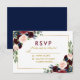 Watercolor Floral Burgundy Gold Blue Wedding RSVP Card