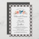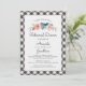 A fun wedding rehearsal invitation featuring a watercolor floral swag and your rehearsal details framed by a black and white checked border. Perfect for an outdoor garden wedding, rustic barn wedding, picnic in the park, backyard BBQ dinner - fun and casual yet classic and simple.