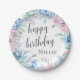Watercolor Floral Elegant Farmhouse Happy Birthday Paper Plate