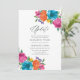 Watercolor floral fiesta postponed wedding invitation with turquoise watercolor wash reverse.