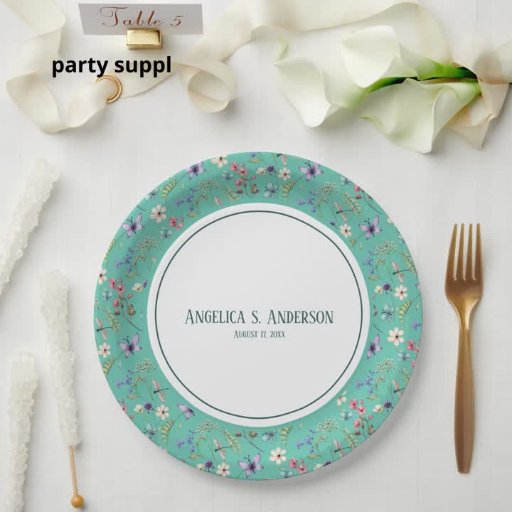 Watercolor light Teal 50th Birthday floral Invitation.