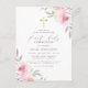 Watercolor Floral Gold Cross First Holy Communion Invitation Postcard