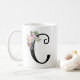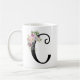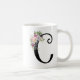 Beautiful Coffee Mug with original monogram art. Black letter C, floral watercolor embellishment (simply by ink)