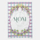 A beautiful kitchen towel featuring hand painted watercolor florals in soft purples, blues, and greens, set against a cozy gingham background. The design frames the word “Mom” with a sweet, customizable message, creating a thoughtful and practical gift she can enjoy every day. Perfect for Mother’s Day or any occasion that calls for a heartfelt touch in the kitchen.