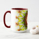 This brightly-coloured mug features a kaleidoscopic fractal image resembling an autumnal-hued watercolor flower.