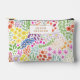 A beautiful pouch with a colorful, hand drawn pattern of watercolor blooming flowers.