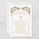 Watercolor Floral Pink Bow Gold Frame Baptism Invitation
