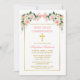 Elegant Watercolor Pink White Floral First Holy Communion Invitation includes pink roses, white flowers and greenery. Gold Cross. Pink Blush Bow Ribbon. Gold Frame.