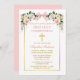 Watercolor Floral Pink Bow Gold Frame Communion Invitation
