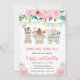 Watercolor Floral Pink Circus Animals Birthday Invitation