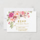 Watercolor Floral Pink Gold RSVP Wedding Card