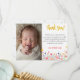 Send a warm note of appreciation with this charming spring-themed baby shower thank you card. Featuring soft watercolor florals and delicate greenery in a cheerful pastel palette, this design beautifully complements your April Showers Bring May Flowers or garden-inspired celebration.