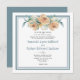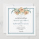 This elegant Watercolor Floral Summer Wedding Invitation is designed with a cluster of flowers in shades of cream and taupe with a blue green border on a white background. The reverse side is designed with a matching floral bouquet on a blue green background. To personalise this card, simply insert your details into our easy template, replacing the sample text.