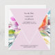 Watercolor Floral background. Envelope Style Square. Wedding Save the Date. Back with Bride and Groom last names as well as the text Wedding. Colourful. Pink.