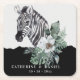 Watercolor Floral Wild Zebra Safari Wedding Square Paper Coaster