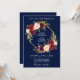 Watercolor Floral Wreath Burgundy Marsala Blue Gold Wedding Invitation Card - Blue Back