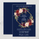 Watercolor Floral Wreath Burgundy Wedding Blue Invitation