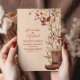 Featuring a crest design reminiscent of traditional Western emblems, adorned with vibrant bohemian floral patterns, this invitation exudes rustic elegance and whimsical charm. The fusion of rustic elements with bohemian motifs creates a captivating invitation that sets the tone for a laid-back yet stylish celebration.