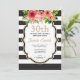 Watercolor Flower Black and White Stripe Birthday Invitation
