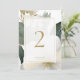 Chic and elegant. This gorgeous wedding table number features a lovely watercolor floral bouquet with imitation gold accents. The design includes a contemporary font in imitation gold set inside a soft white overlay with delicate frame. The design is repeated at the back.