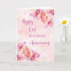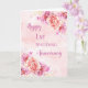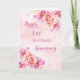 Happy 1st wedding anniversary card with beautiful pink watercolor flowers pattern and sentimental verse.
