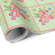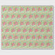 Pink watercolor flowers on green with yellow and blue butterflies.