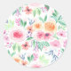 Watercolor flowers and leaves classic round sticker