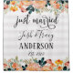 Watercolor Flowers and Striped Just Married Shower Curtain