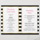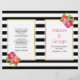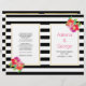 Outstanding pink and purple tropical watewrcolor flowers and black, white stripes folded wedding ceremony and party program. Lovely tropical flowers adorn this elegant and modern floral wedding design. Your text is placed on white frames with gold outlines. Choose the value paper as it folds well and fold it in half manually.