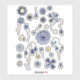Pretty floral nature watercolor painted stickers in indigo blue and gold.