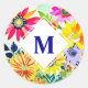 Watercolor Flowers Monogrammed Classic Round Sticker