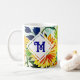 Pretty pink, yellow and purple watercolor ai art flowers floral coffee mug. Add initial in the personalised area.