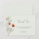 Watercolor red flowers with sage green leaves on a custom pale green background customisable thank you invitation.