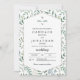 This elegant wedding invitation set features hand-painted leaves in various shades of green on a white background. Modern typography adds a fresh and chic twist to this classic design by Kitty Pie Prints.