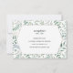 This elegant wedding invitation set features hand-painted leaves in various shades of green on a white background. Modern typography adds a fresh and chic twist to this classic design by Kitty Pie Prints.