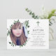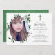 Trendy wild woodland forest greenery Baptism or Christening invitation card designed to be quickly and easily customised to your specifics. A portrait shaped photo is recommended.