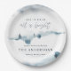 Watercolor forest minimal personalised Christmas party paper plate. Elegant winter blue and white design. Part of a modern, minimal holiday collection.