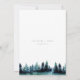 The backside of the woodsy forest wedding invitation is a watercolor forest tree line with the couple's first names and wedding website.