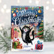 Watercolor Funny Black Cat Merry Christmas Card