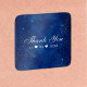 Watercolor Galaxy Cosmic Stars Starry Wedding Thank You Square Sticker. This design features twinkling star lights in space against a nebula starry sky of a celestial navy blue universe. Personalise this custom design with your own text and event details.