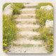 Watercolor garden with yellow flowers in blossom and stone stairs