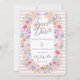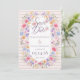 This invitation features soft, airy watercolor florals like the blush and medium pink garden roses and light pink ranunculus. The pale blue hydrangea clusters, peach and butter-yellow cosmos/anemone-style flowers, lavender and soft purple wildflowers, and small ivory/cream filler blooms round off this flower frame with a romantic garden mix. Add in the wispy baby’s breath–style sprigs, tiny clustered buds in muted pinks and creams, and light, dusty eucalyptus-style greenery and you've got a very balanced pastel palette with loose + organic, not tight bouquets. It sets the perfect tone for a bridal / garden / airy, not rustic or moody party, designed to feel lightweight and elegant.
