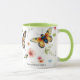 Watercolor garden flowers, butterflies, bees pattern family name mug.