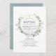 Watercolor Geometric Eucalyptus Baptism Invitation