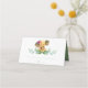 Cute Place Card or Escort Card design features a watercolor elephant sitting on top of a bed of greenery. Space provided for guest name and table number. Cards reverse to reveal matching pink and green name and party date in hand lettered script typography. The inside features a matching solid green colour. Designed to match VG Invites watercolor elephant collection. Perfect for gender neutral and girl baby showers and girl twins birthday parties. To see more visit www.zazzle.com/vginvites